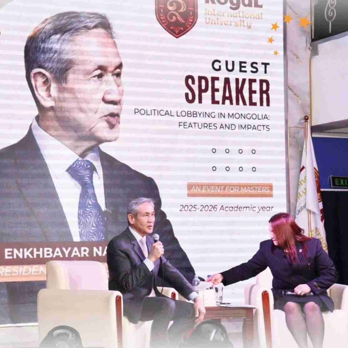 22 минутын өмнө 0 сэтгэгдэл“Рояал” олон улсын их сургуулийн 2025-2026 оны хичээлийн жилд магистрантаар суралцаж буй оюутнуудад зориулж, “Монголын улс төр дэх лоббизм” сэдвийн хүрээнд Монгол Улсын гурав дахь Ерөнхийлөгч Н.Энхбаяр лекц уншиж, нээлттэй ярилцлага өрнүүлснийг бүрэн эхээр нь хүргэж байна.