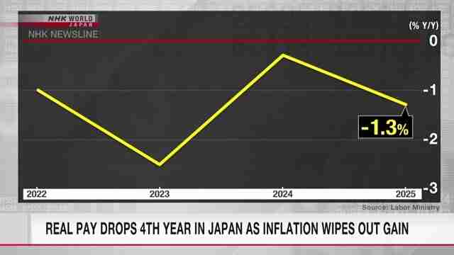 Хэрэглээний бараа, үйлчилгээний үнийн өсөлт нь хөдөлмөрийн хөлсний номинал өсөлтөөс давсаар байгаагаас шалтгаалан өнгөрсөн онд Япон улсад бодит цалингийн хэмжээ дөрөв дэх жилдээ дараалан буурчээ.