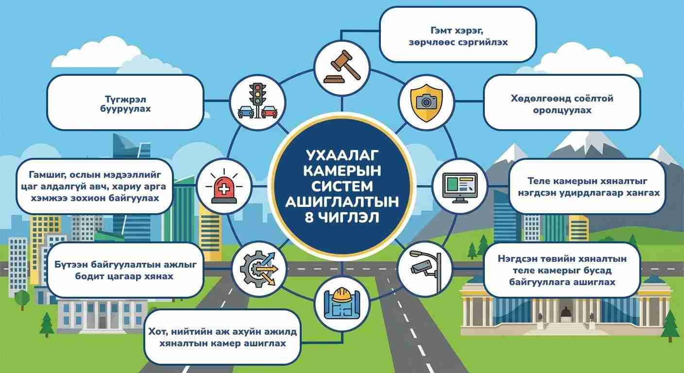 Нийслэл Улаанбаатар хотын хэмжээнд теле камерын нэгдсэн төв болон түүний дэд төвүүдийг дүүрэг бүрд байгуулж, тэдгээрийн дэд бүтэц, удирдлага, хяналтын систем, программ хангамжийг бий болгож ажиллаж байна.