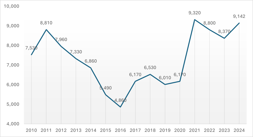 Зэсийн зах зээлийн үнийг сүүлийн 15 жилээр харвал хэлбэлзэл ихтэй 2011 оноос 2016 он хүртэл тасралтгүй буурч байсан бол Ковид цар тахлаас хойш эрчимтэй сэргэж 2024 оны байдлаар тонн зэсийн үнэ 9’142 ам.долларт хүрч сэргэсэн нь үйлдвэрлэлийг нэмэгдүүлэх сонирхлыг бий болгож байна гэж үзэж болохоор байна.