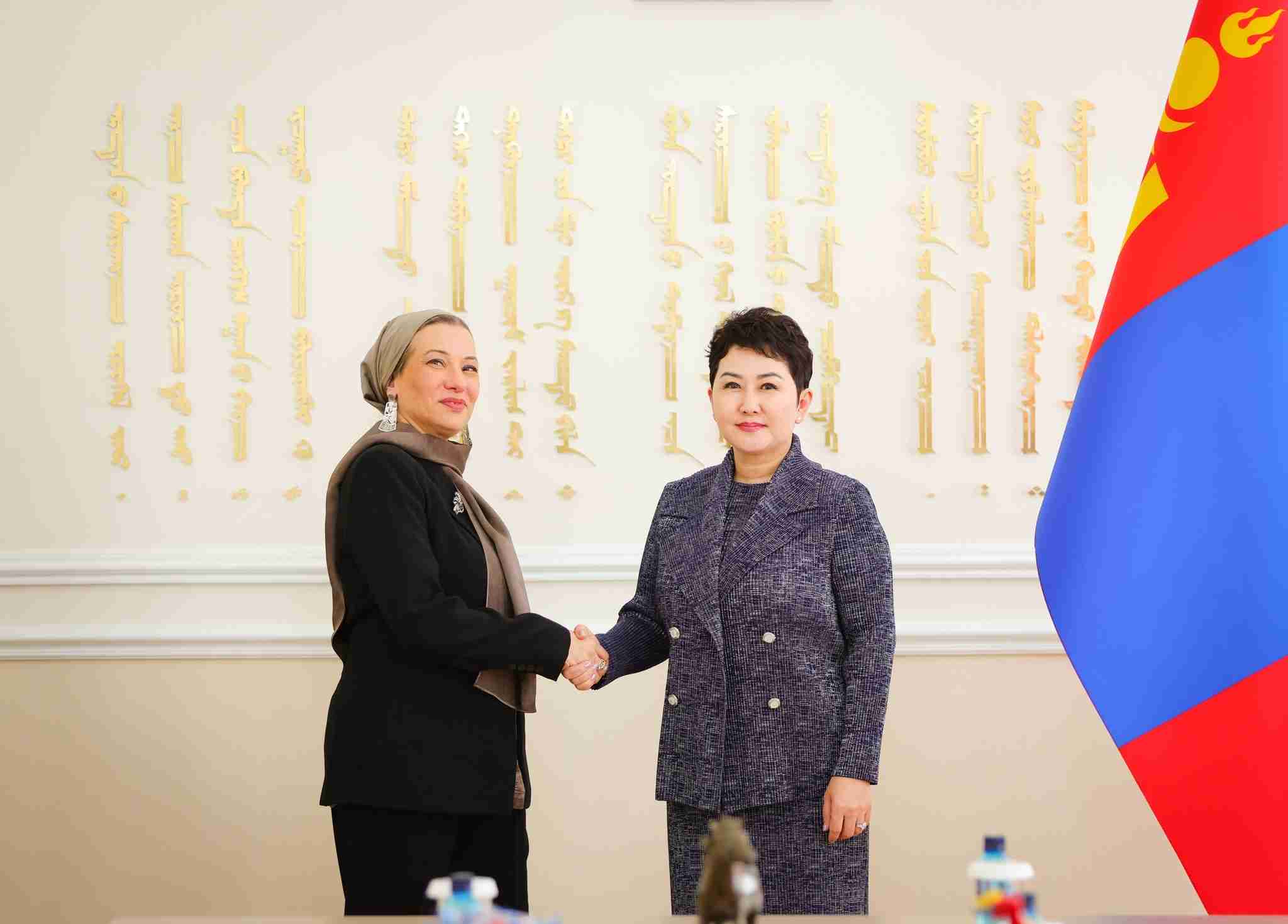 Гадаад харилцааны сайд Б.Батцэцэг 2026 оны 4 дүгээр сарын 14-ний өдөр Цөлжилттэй тэмцэх тухай НҮБ-ын конвенцын Гүйцэтгэх нарийн бичгийн дарга Ясмин Фуадыг хүлээн авч уулзав.