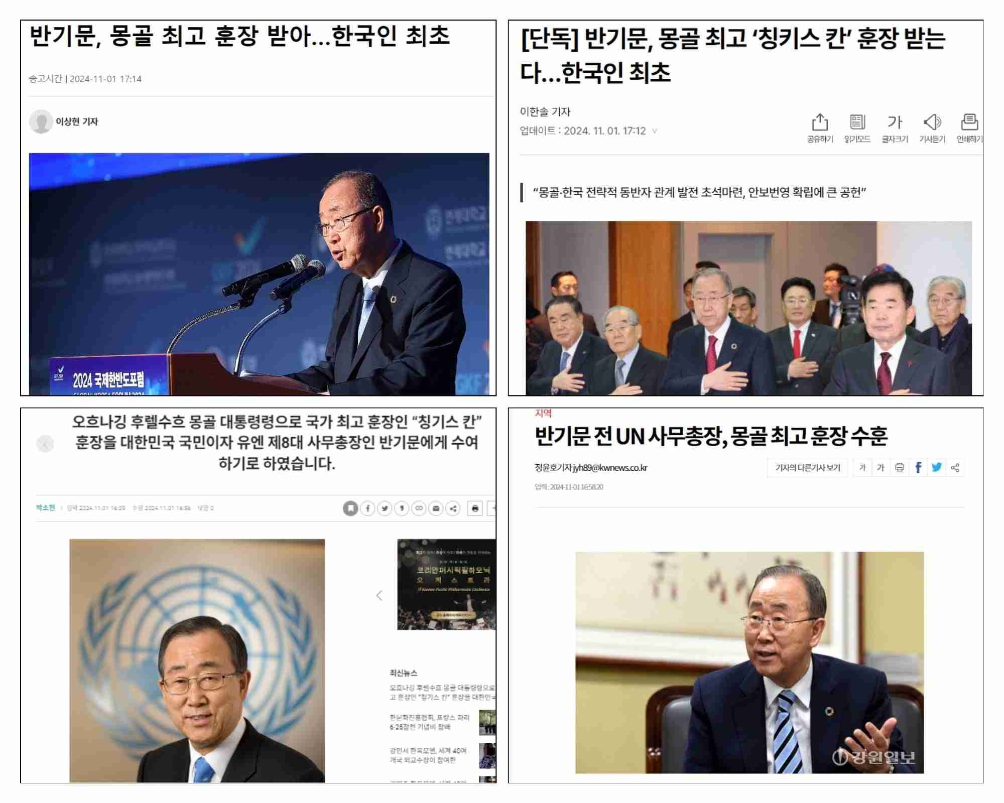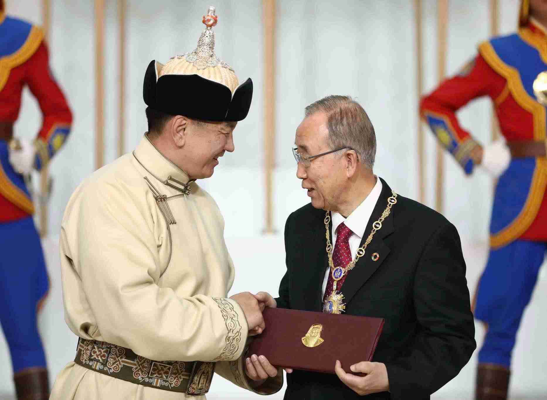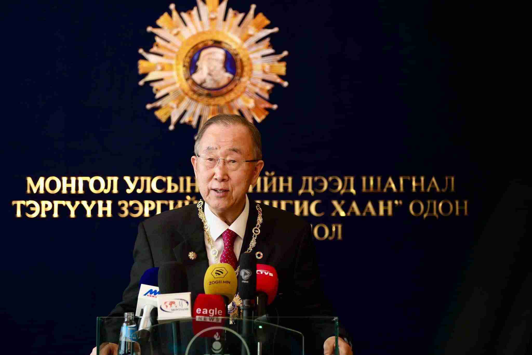 Монгол Улсын Ерөнхийлөгчийн зарлигаар төрийн дээд шагнал, тэргүүн зэргийн “Чингис хаан” одонг БНСУ-ын иргэн, НҮБ-ын найм дахь Ерөнхий нарийн бичгийн дарга Бан Ги Мүн хүртэхээр болоод буй.