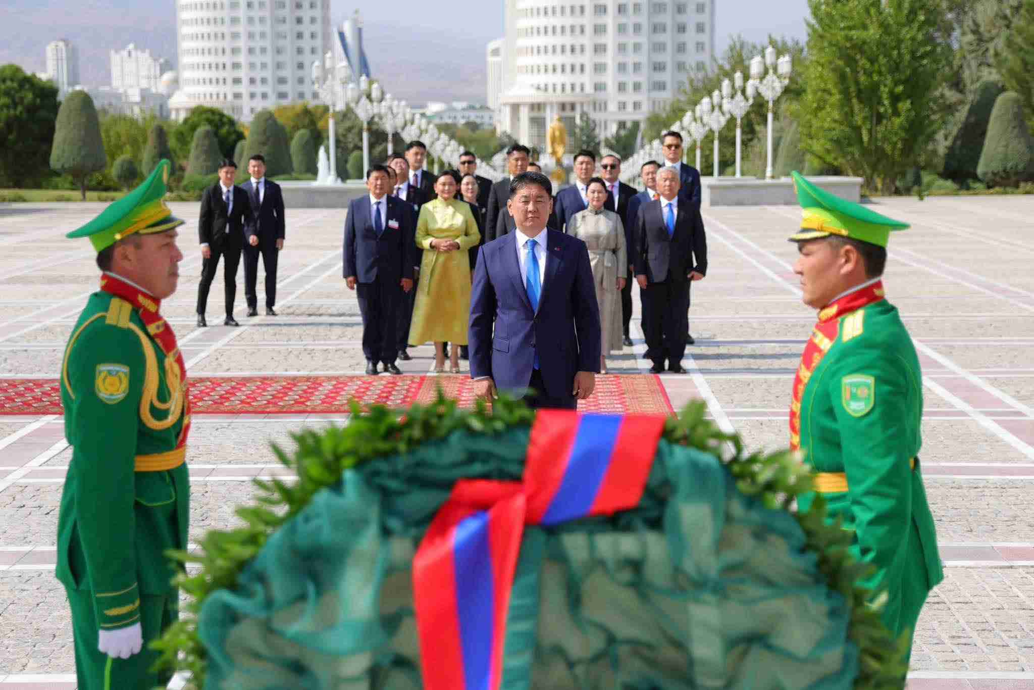 Монгол Улсын Ерөнхийлөгч У.Хүрэлсүх Туркменистаны Тусгаар тогтнолын хөшөөнд цэцэг өргөж, мод тарилаа