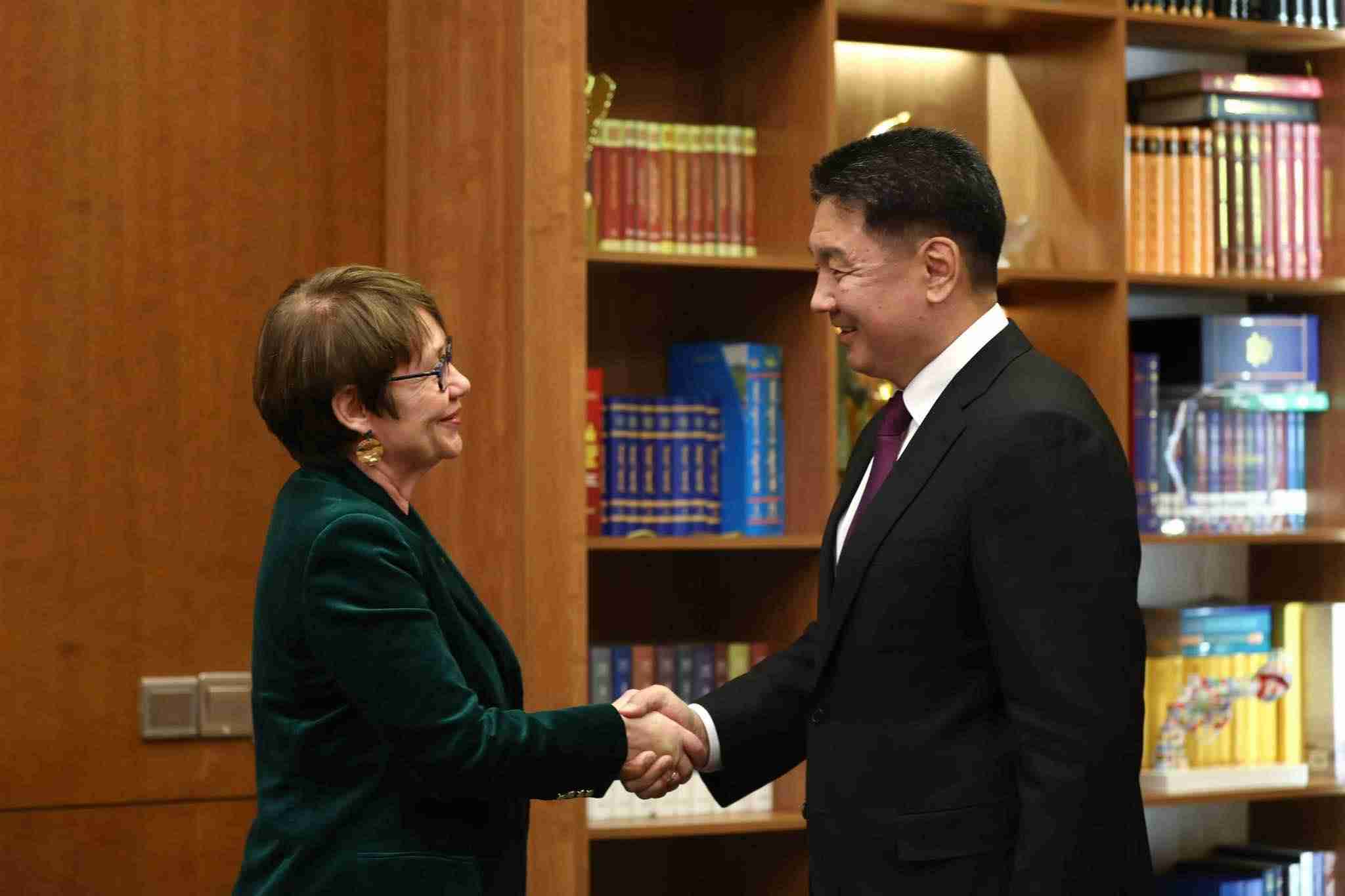 Монгол Улсын Ерөнхийлөгч Ухнаагийн Хүрэлсүх Европын сэргээн босголт, хөгжлийн банкны Ерөнхийлөгч Одиль Рено-Бассо-г хүлээн авч уулзлаа.