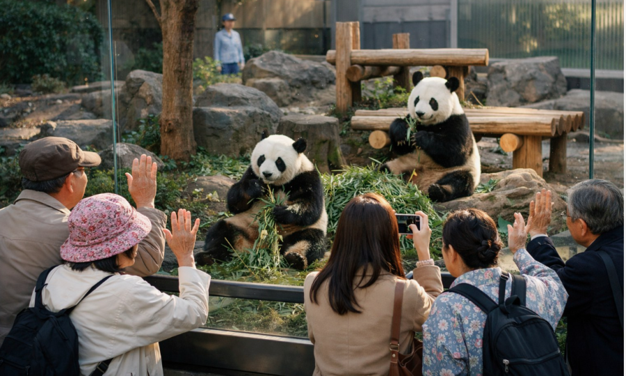 Өнөөдөр Хятад руу буцааж буй хоёр панда баавгайг үдэхээр олон мянган япончууд Токиогийн Уэно амьтны хүрээлэнд иржээ.
