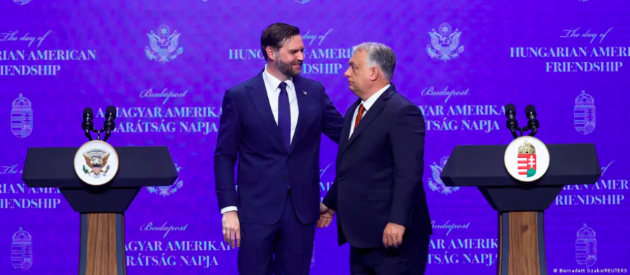 АНУ-ын дэд ерөнхийлөгч Жей Ди Вэнс хоёр өдрийн айлчлал хийхээр гэргий Уша Вэнсийн хамт өчигдөр Унгарын нийслэлд хүрэлцэн ирэхэд тус улсын Гадаад хэргийн сайд Петер Сийярто цэцэг барин угтжээ.