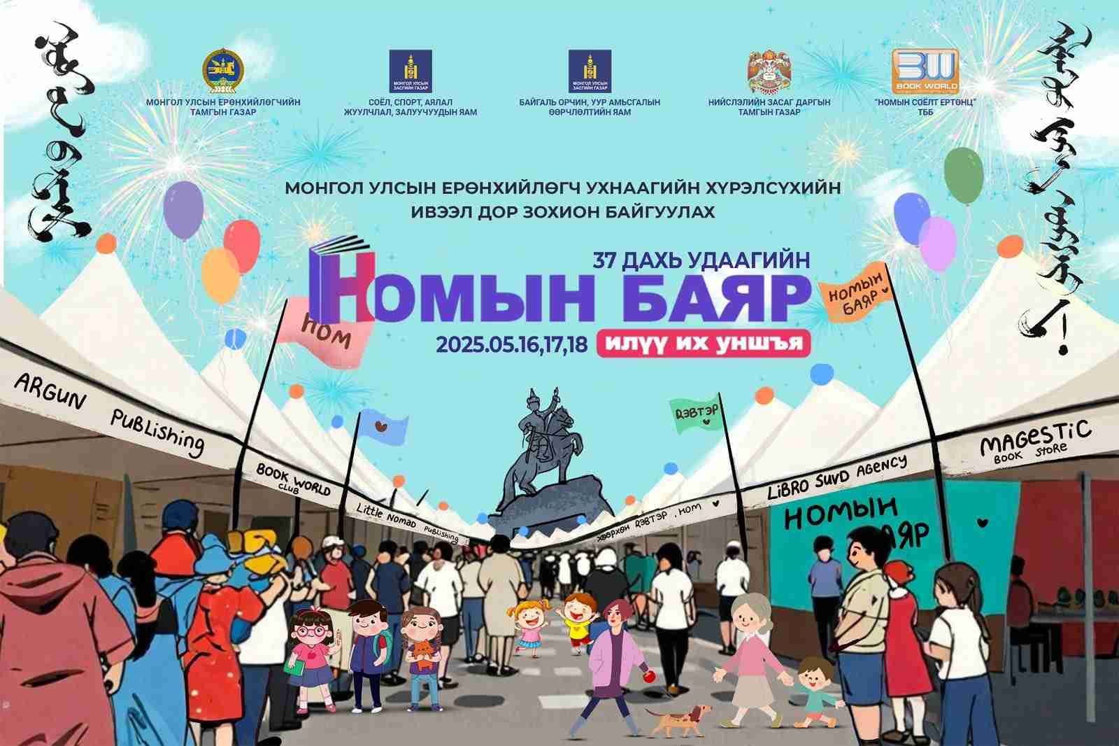 Гурван өдөр үргэлжлэх 37 дахь удаагийн “Үндэсний бичиг соёл, номын өдрүүд-2025” буюу номын баярыг тавдугаар сарын 16-18-нд Сүхбаатарын талбайд зохион байгуулах гэж буй.