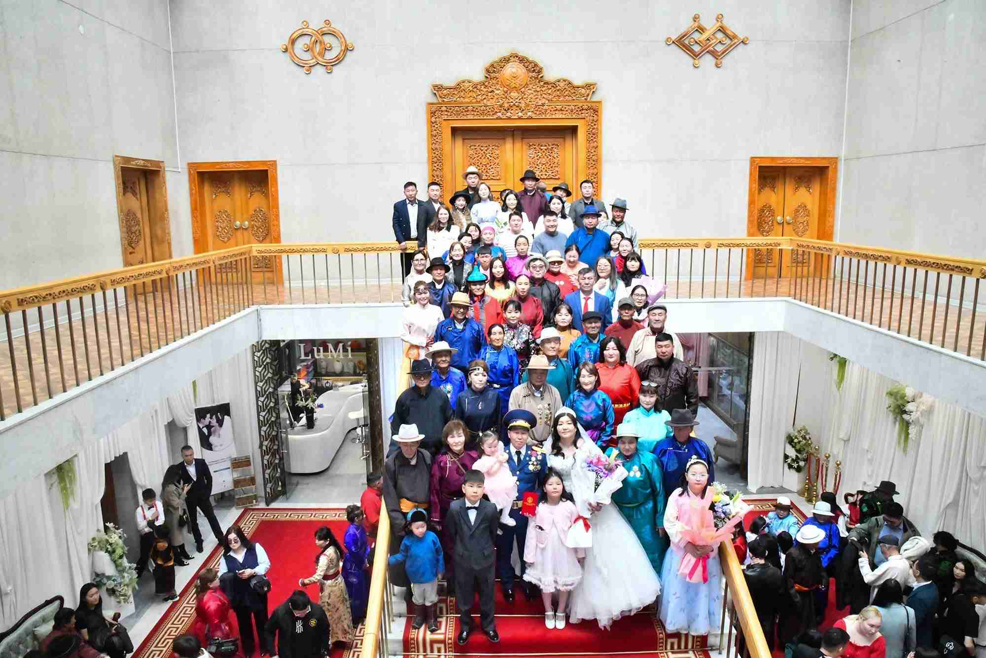 Нийслэлийн нутгийн захиргааны байгууллага НОБГ, ОСНААУГ, УСУГ, НЦУГ, НБГ, Зорчигч тээвэр 4, Баянгол эрүүл мэндийн төвөөс ажил амьдралын зам мөрөө холбосон долоон хос “Гэрлэх ёслолын ордон”-д өнөөдөр хуримлалаа.