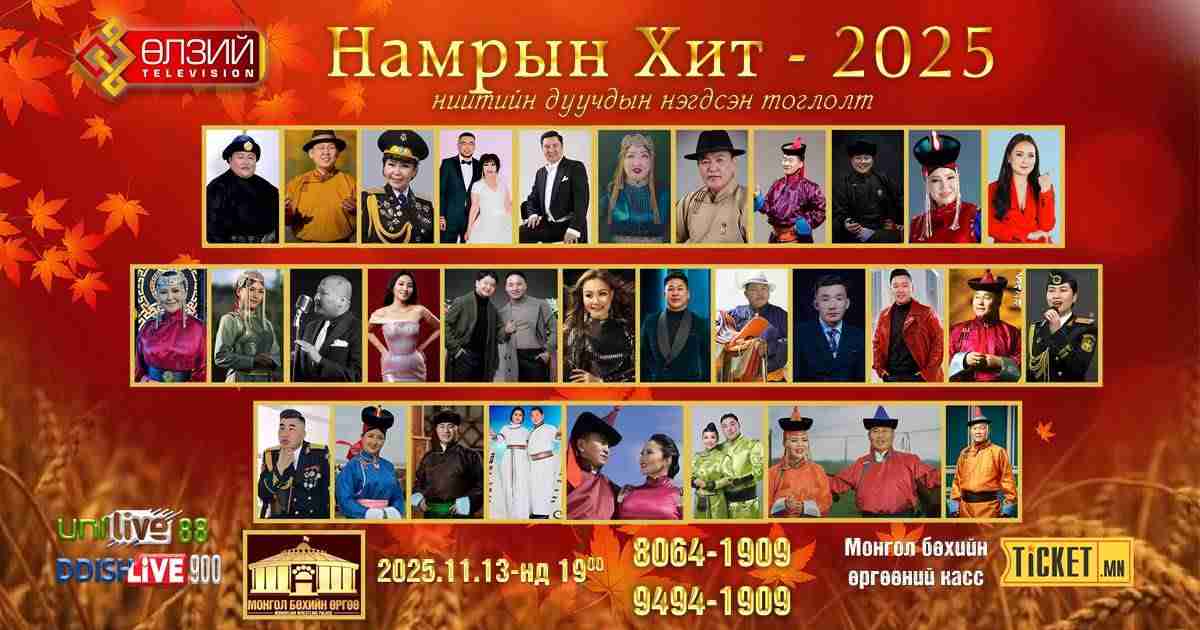"Намрын хит-2025" тоглолт 11-р сарын 13-нд ганцхан удаа Монгол бөхийн өргөөнд тоглоно